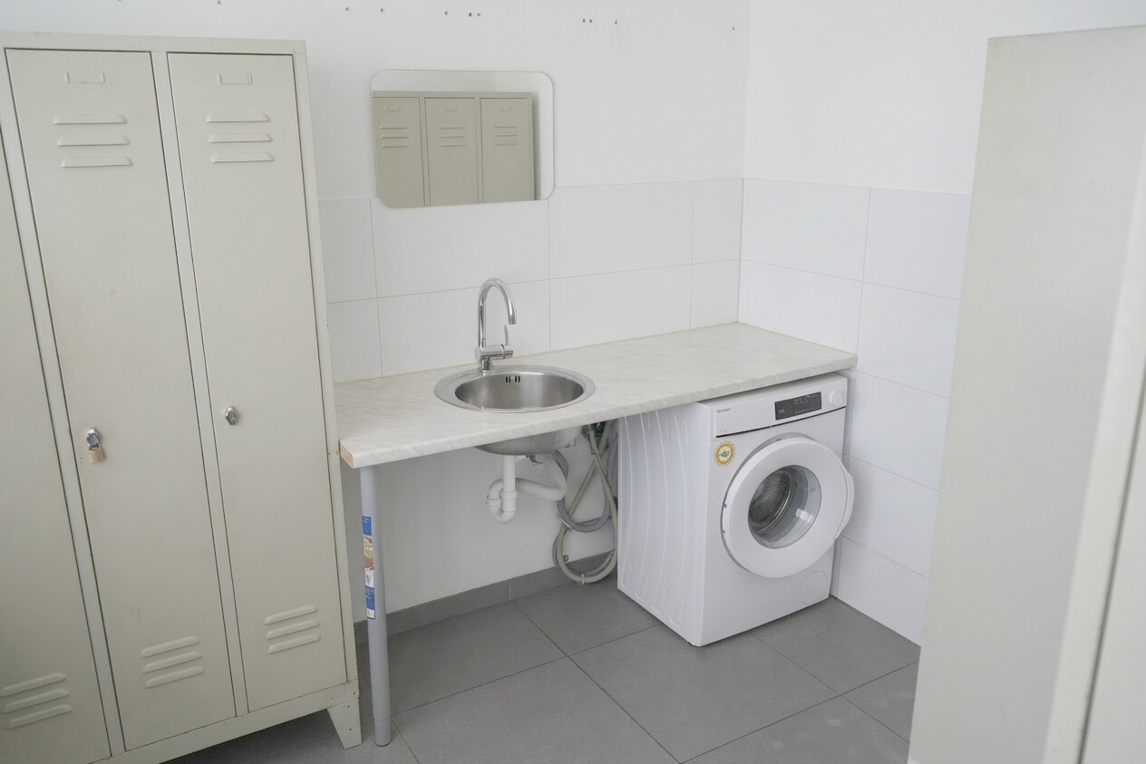 Der Innenbereich ist mit einem robusten Mix aus Beton- und Fliesenboden ausgestattet. Diese Kombination sorgt für eine besonders strapazierfähige und pflegeleichte Oberfläche, die auch für intensive gewerbliche Nutzung geeignet ist.