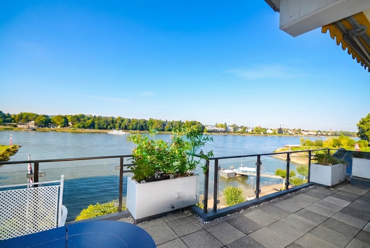 Willkommen in Ihrer neuen Traumwohnung in Königswinter direkt am Rhein! Diese exquisite Wohnung zur Miete bietet Ihnen nicht nur ein modernes und stilvolles Ambiente, sondern auch einen atemberaubenden Panoramablick, der sich über den Rhein, das idyllische Siebengebirge mit seinen malerischen Weinbergen und die Stadt Bonn sowie Bad Godesberg erstreckt.