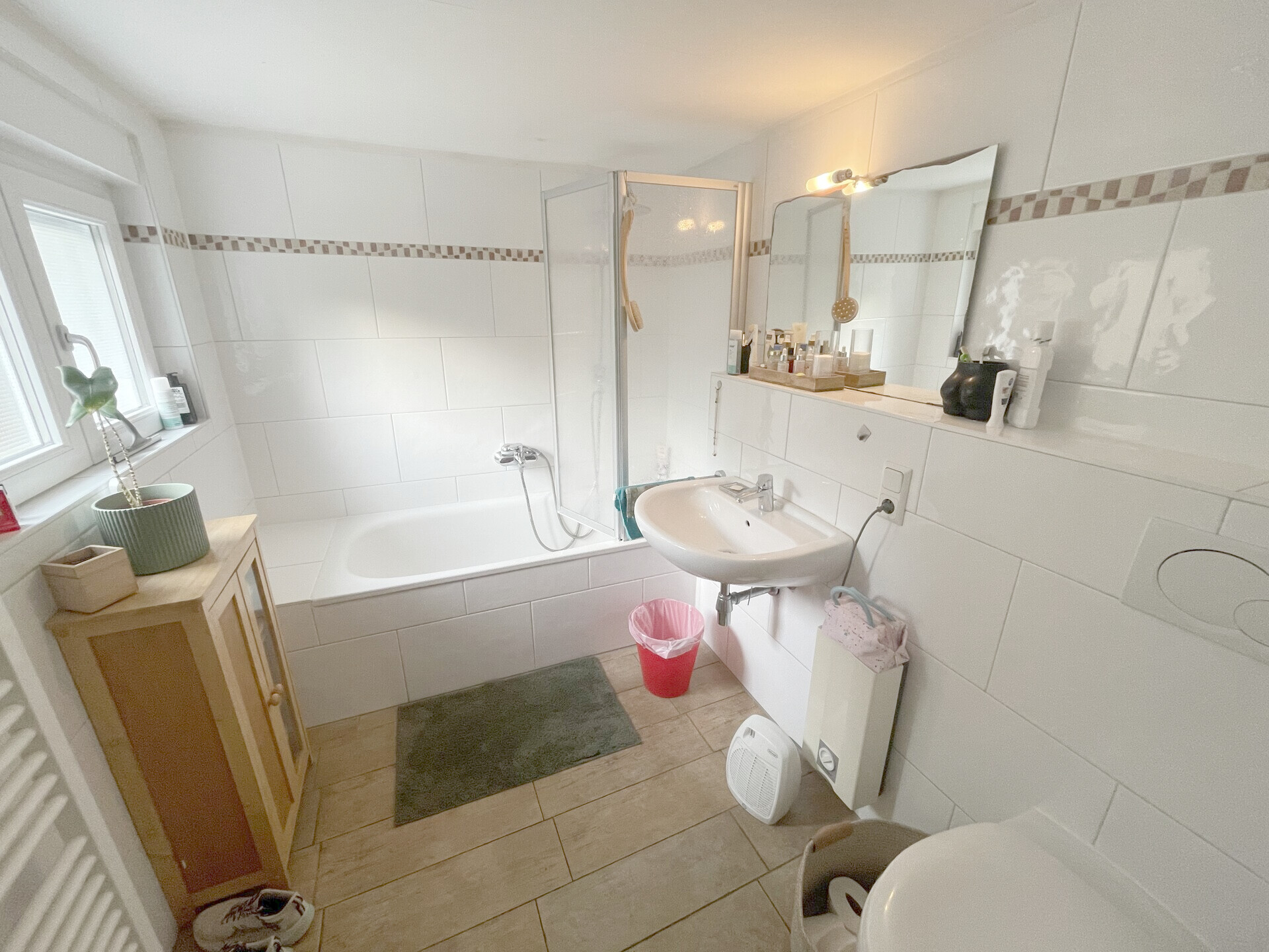 Zwei Badezimmer sorgen für einen reibungslosen Start in den Tag, auch wenn es morgens einmal etwas hektischer zugeht.
