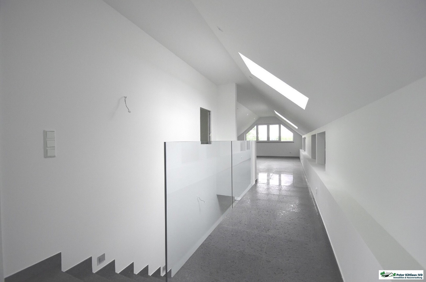 Ein Aufzug bringt Sie direkt zur Wohnung zwischen der 2. und 3. Etage, die durch eine beeindruckende Raumaufteilung besticht. Beim Eintritt empfängt Sie eine großzügige Diele mit einer stilvollen Treppe. Diese öffnet sich zu einem weitläufigen Wohn-/Essbereich mit offener Küche. Große Fenster durchfluten den Raum mit Tageslicht und schaffen eine einladende Atmosphäre. Zahlreiche Anschlüsse für die Installation einer hochwertigen Kücheneinrichtung sind vorhanden. Eine angrenzende Loggia bietet einen malerischen Blick auf das Siegtal, ideal für entspannte Stunden im Freien.